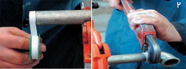 لوله و اتصالاتی را که از قبل اماده کرده اید به کمک خمیر و کنف به یکدیگر ارتباط دهید.